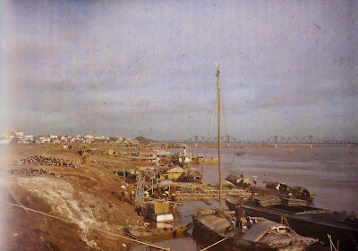 Hanoi, sampans and Paul Doumer Bridge, 1915